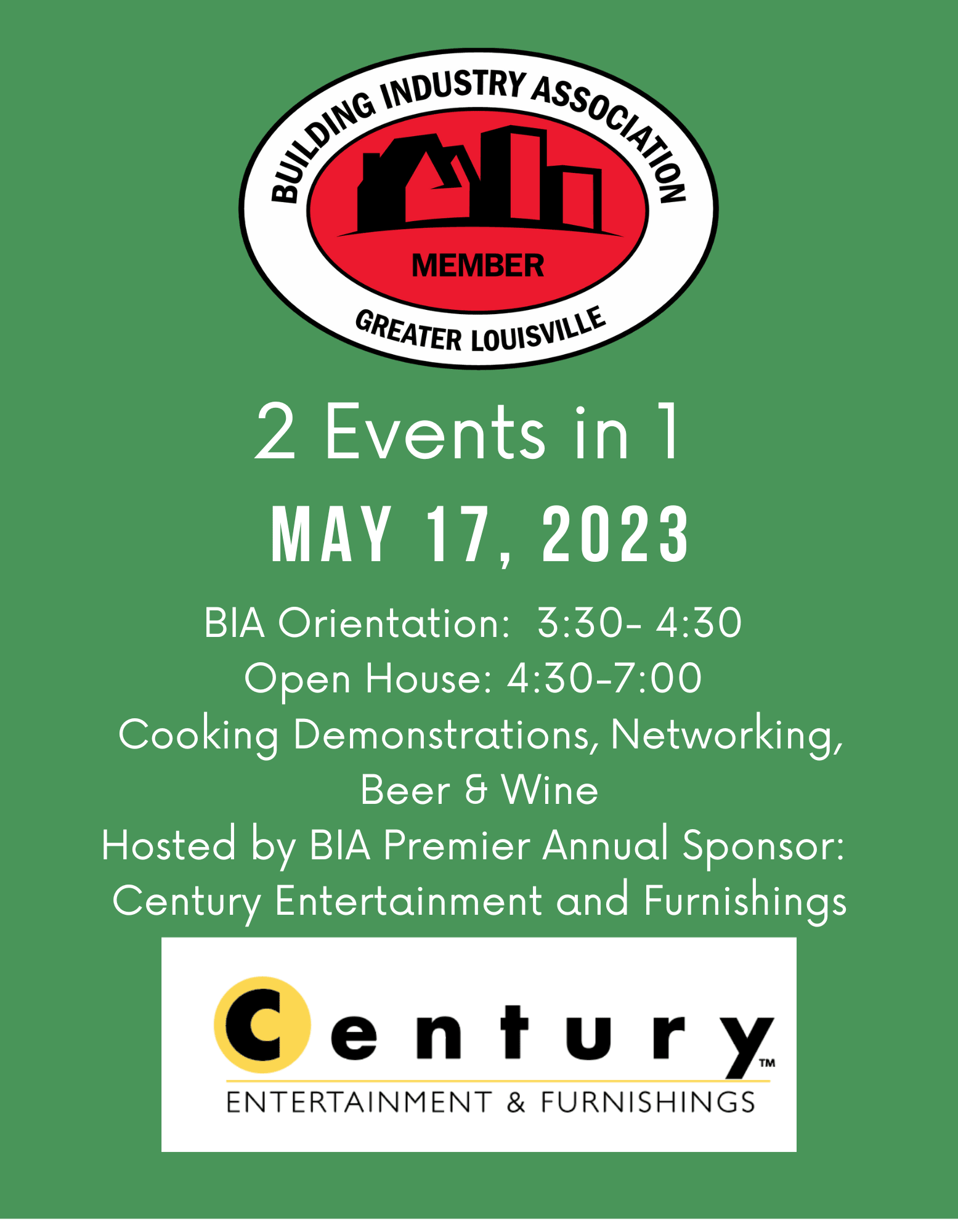 We look forward to our orientation/networking event hosted by Century Entertainment and Furnishings at their showroom! Along with networking there will be beer, wine, and small bites.